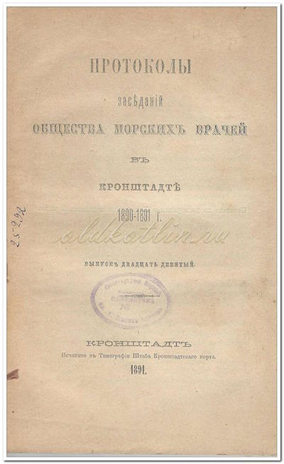 Протоколы заседания общества морских врачей в Кронштадте 1894-1895 гг. Выпуск 33 Представляю вашему вниманию скан вышеназванной книги. Протоколы заседаний Общество Морских Врачей в Кронштадте — это сборник официальных записей о работе врачебного объединения, действовавшего при Кронштадтском военно‑морском госпитале с середины XIX века до начала XX века (основано 7 февраля 1859 года). В [...]