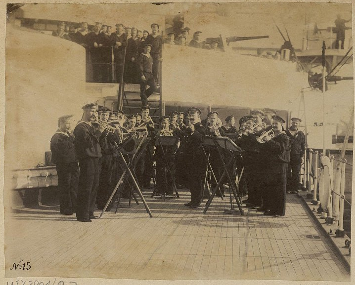 Альбом «Поход эскадренного броненосца «Пересвет» из Кронштадта на Дальний Восток». Корабельный оркестр. goskatalog.ru