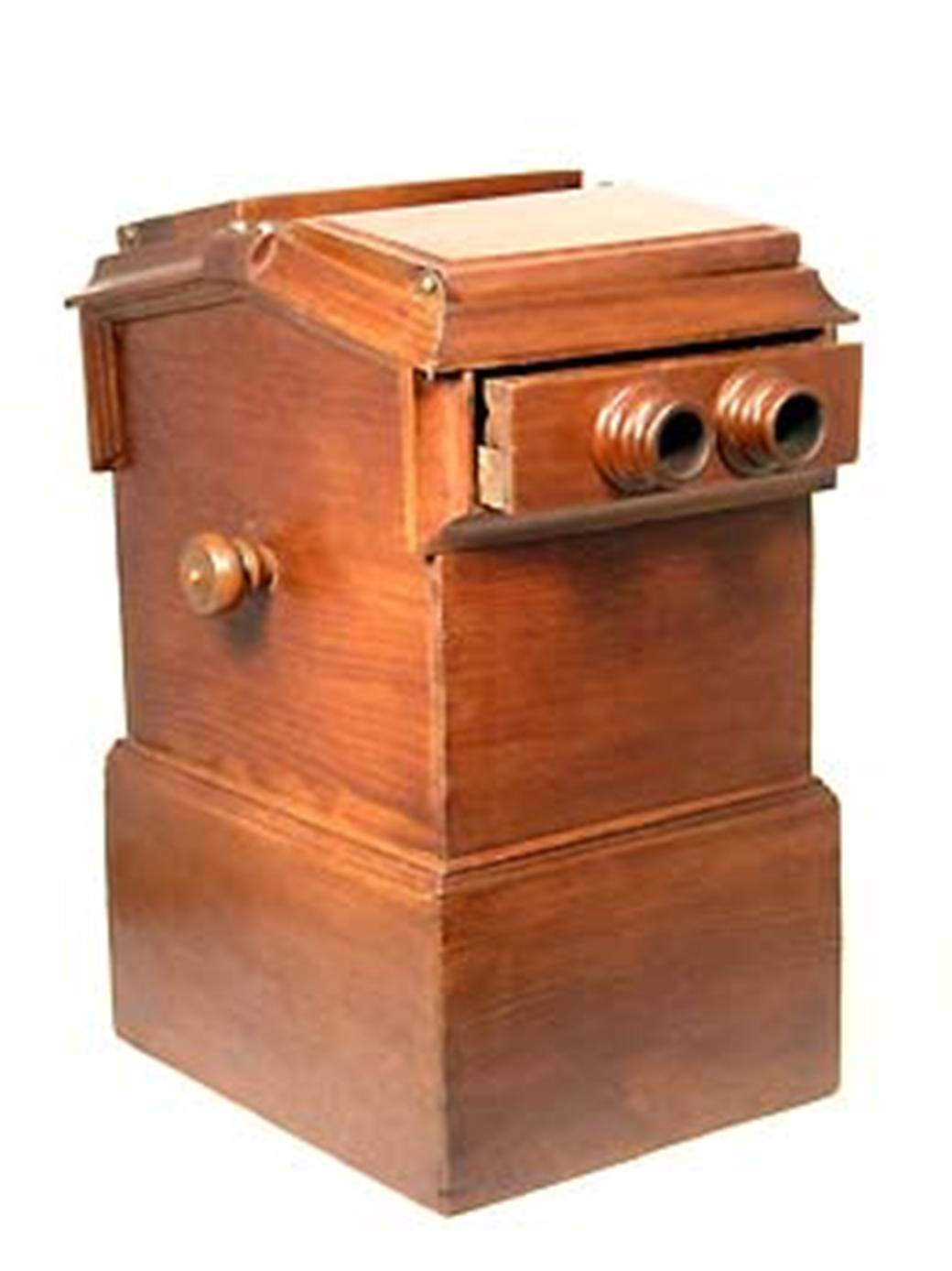 Складной деревянный стереоскоп, использовался в галлерее Philadelphia Gallery of Fine Arts. Изображение с аукциона www.1stdibs.com