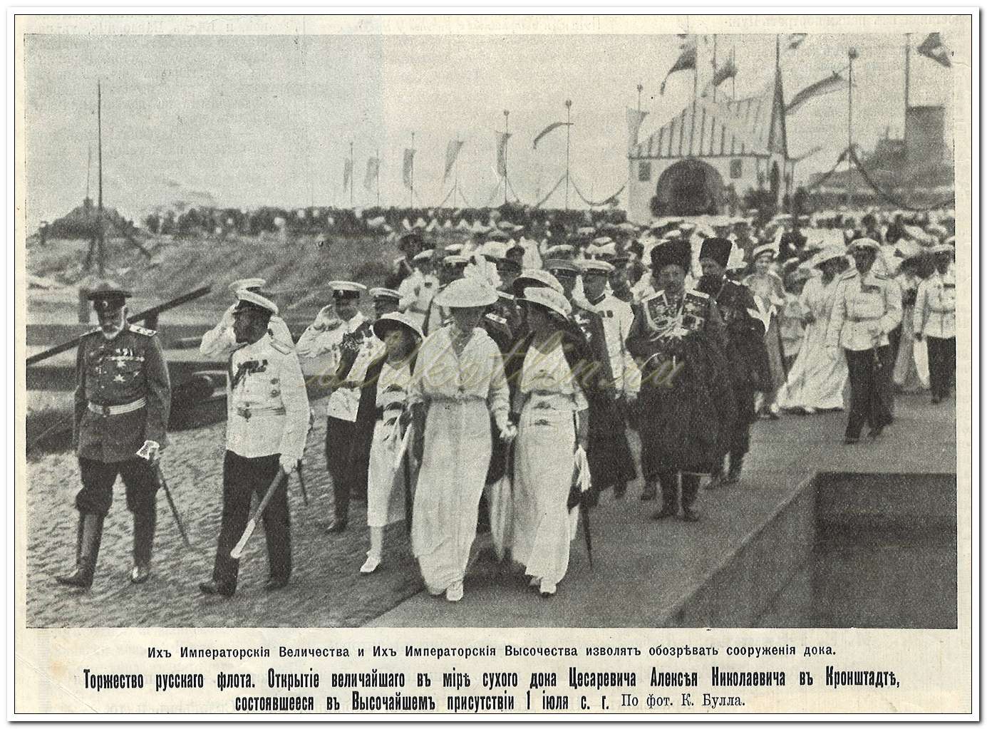 1 июня с. г. в Кронштадте совершилось большое торжество в присутствии императора: было освящение громадного нового дока имени государя императора Николая II, заложенного в 1908 году.